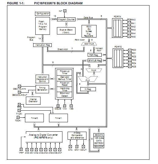 Features: (1)Interrupt Capability; (2)8-level Deep Hardware Stack; (3)Direct, Indirect, and Relative Addressing modes; (4)Power-Saving Sleep mode; (5)Wide Operating Voltage Range – 2.0V to 5.5V; (6)Industrial and Extended Temperature Range; (7)Low-Power Power-on Reset (POR); (8)Power-up Timer (PWRT) and Oscillator Start-up Timer (OST); (9)Brown-out Detect (BOD); (10)Watchdog Timer (WDT) with Independent Oscillator for Reliable Operation; (11)Multiplexed MCLR/Input-pin; (12)Interrupt-on-Pin Change; (13)Individual Programmable Weak Pull-ups; (14)Programmable Code Protection; (15)12 I/O Pins with Individual Direction Control; (16)High Current Sink/Source for Direct LED Drive.